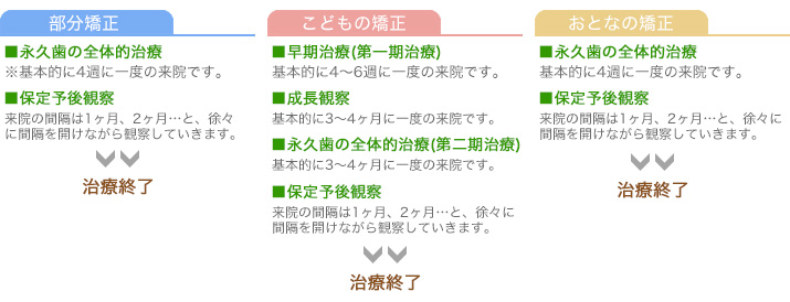 症状によって、早い時期に治療をしたほうが良いケースもありますし、永久歯がある程度生え揃ってから、ケース別に最適なスタート時期が変わってきます。